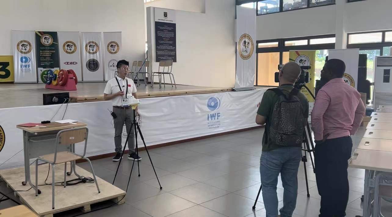 △ 新华社驻西非记者对中国·3003新葡体育非运会负责人进行采访