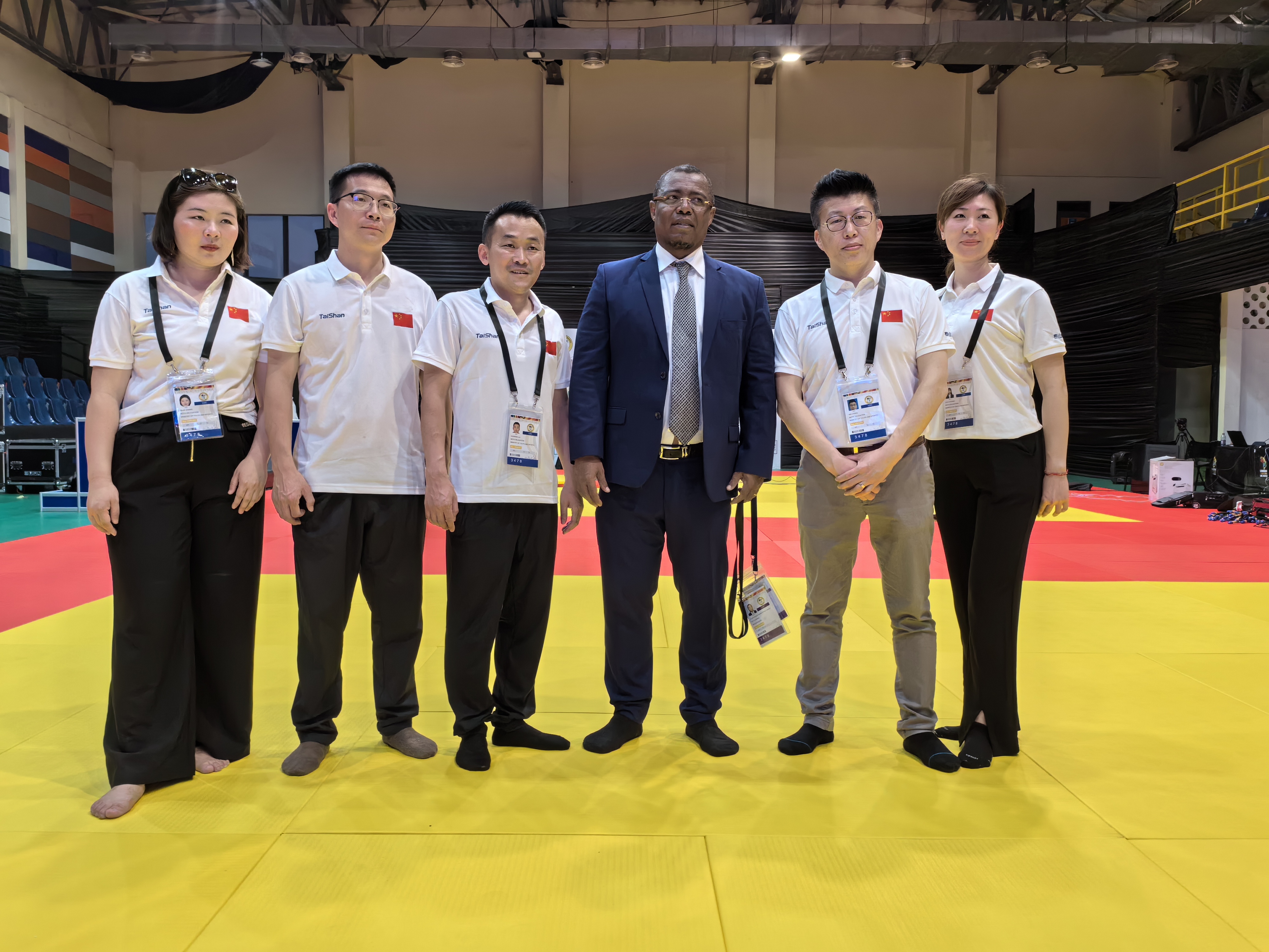 △ 中国·3003新葡体育保障团队与非洲柔道联盟主席Siteny Randrianasolo合影
