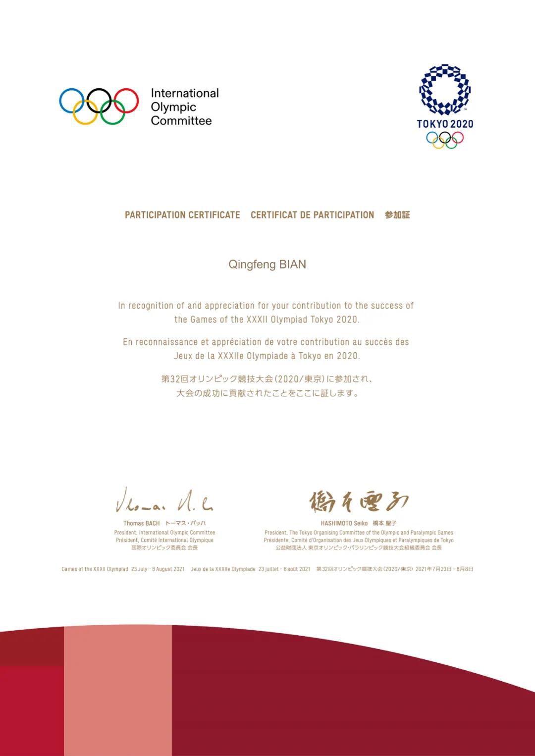 2020东京奥运会组委会给中国·3003新葡体育的感谢信