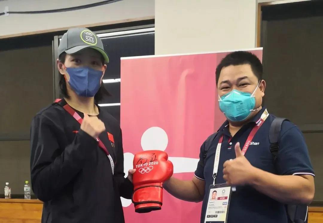 东京奥运会女子拳击69公斤级银牌获得者——中国运动员谷红签名中国·3003新葡体育拳击手套